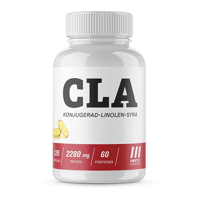 Fettförbränning med CLA Köp CLA för att snabbare bränna fett utan att minska på muskelmassa! CLA är en transfettsyra och varje kapsel av North Nutrition CLA innehåller hela 750 mg Konjugerad linolsyra redo att förbättra din fettförbränning! Produkten är helt fri från koffein och andra vanliga stimulanter i fettförbränningsprodukter, vilket är fördelaktigt för dig som är känslig mot koffein eller tränar sent på kvällen. Konjugerad linolsyra är ett essentiellt ämne, det vill säga inget som kroppen själv kan producera, utan måste tillföras via kost eller kosttillskott. Nu kan du få i dig CLA snabbt och enkelt i kapselform, med en daglig dos på hela 1500 mg CLA! CLA fördelar Bränner fett Behåller muskelmassa Använd under diet Fri från stimulanter Koffeinfri Innehåller grenade aminosyror Endast 10 kcal / kapsel Använd under diet North Nutritions CLA innehåller endast 10 Kcal per kapsel och tack vare sina fettförbrännande egenskaper vid fysisk aktivitet är det ett fördelaktigt kosttillskott att använda under olika former av dieter. Speciellt populärt har CLA blivit för dieter med underhudsfett i fokus, då det är där CLA har störst effekt. Förbränningen sker genom att CLA hindrar vissa fettsyror från att binda sig, samtidigt som det också ökar energin. CLA som kosttillskott CLA kan inte produceras själv av kroppen och måste tillföras via kost och/eller kosttillskott. I kost finns CLA bland annat i nötkött och mjölk. CLA har blivit ett vanligt kosttillskott, eftersom mängden CLA man vill åt för att få den extra fettförbrännande effekten i princip är omöjlig att få i sig naturlig kostväg. Konjugerad linolsyra CLA har inte bara fördelaktiga fettförbrännande egenskaper, utan kan också ha en skyddande effekt för kroppen. Konjugerad linolsyra är en omättad fettsyra, precis som Omega 3, och kallas också för Omega 6. CLA kan ge ett förstärkt skydd mot virus och infektioner genom att öka mängden vita blodkroppar.
